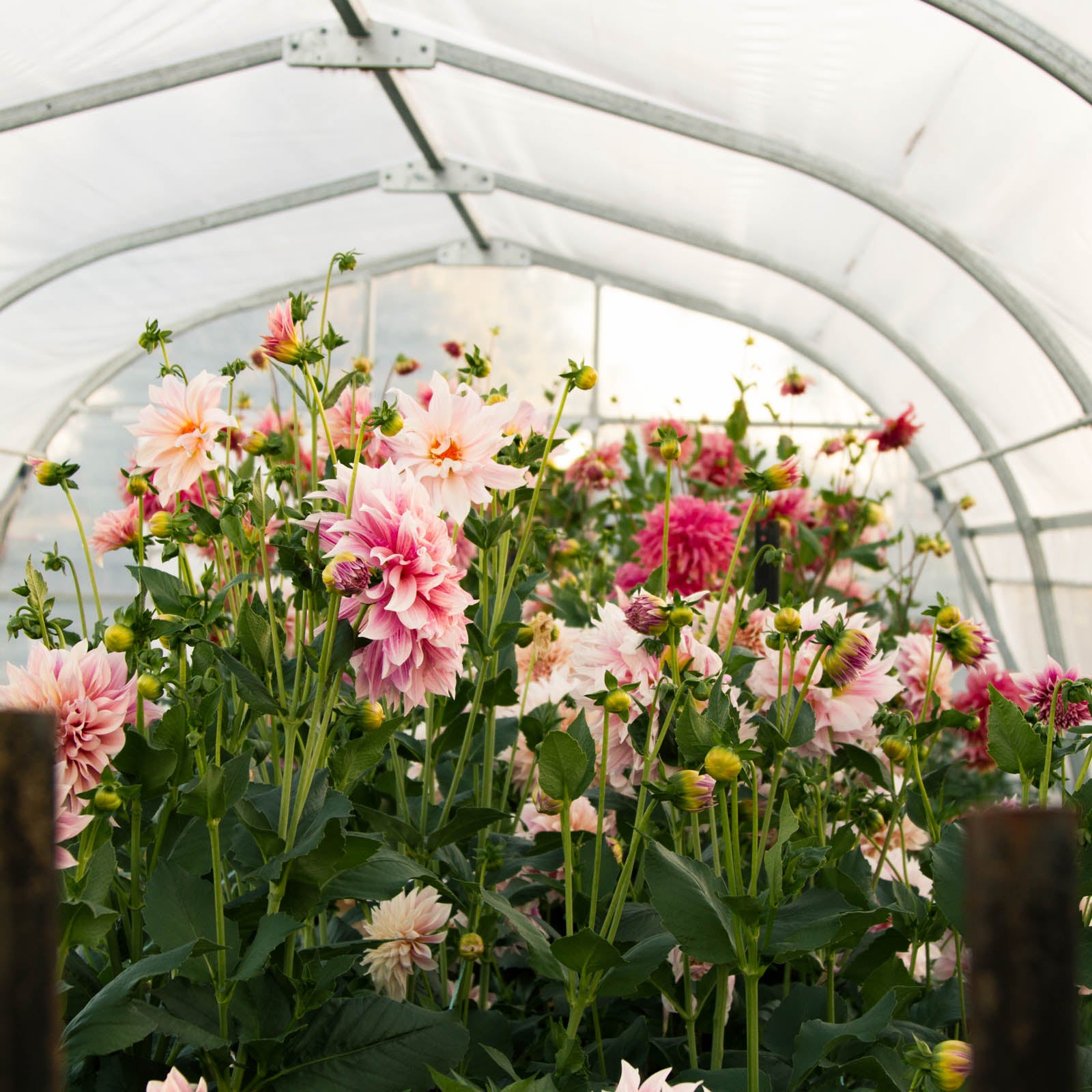 Having learnt my cyclone lessons, and lost my first sad little tunnel that lasted just one week before one of the cyclones claimed it. I got the biggest, meatiest, cyclone proof tunnel I could afford! It was a little late going in, so our spring crops were still mostly outside. But oh what a total jungle of dahlias we had come summer!
