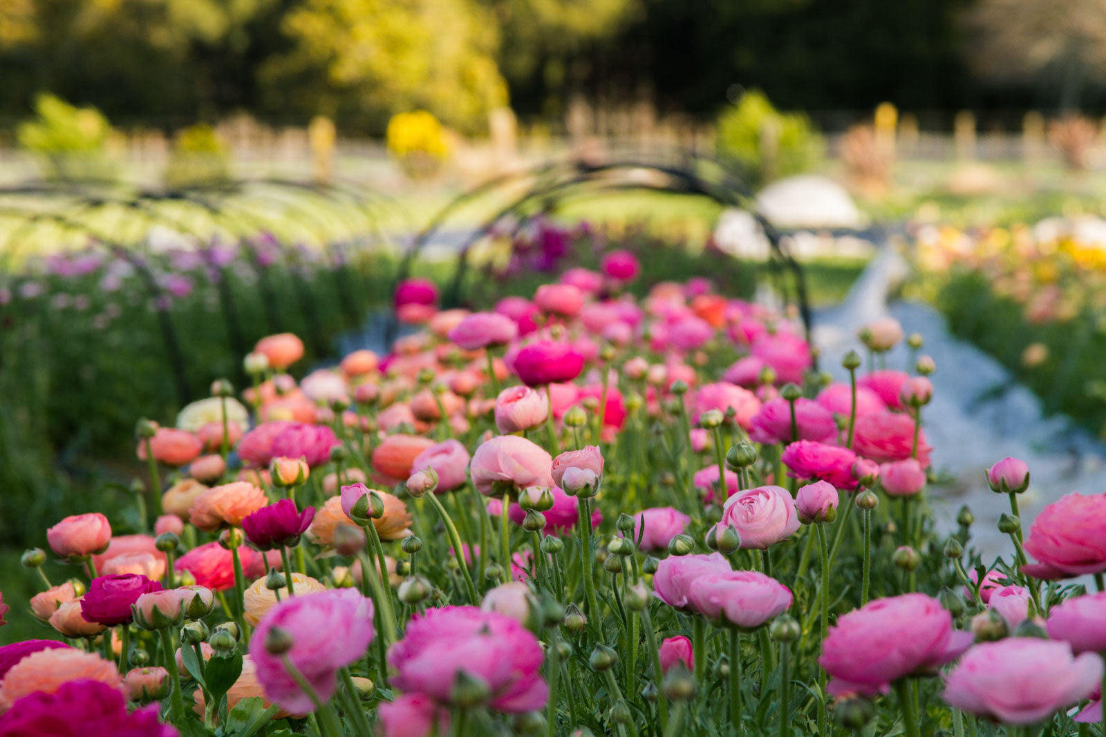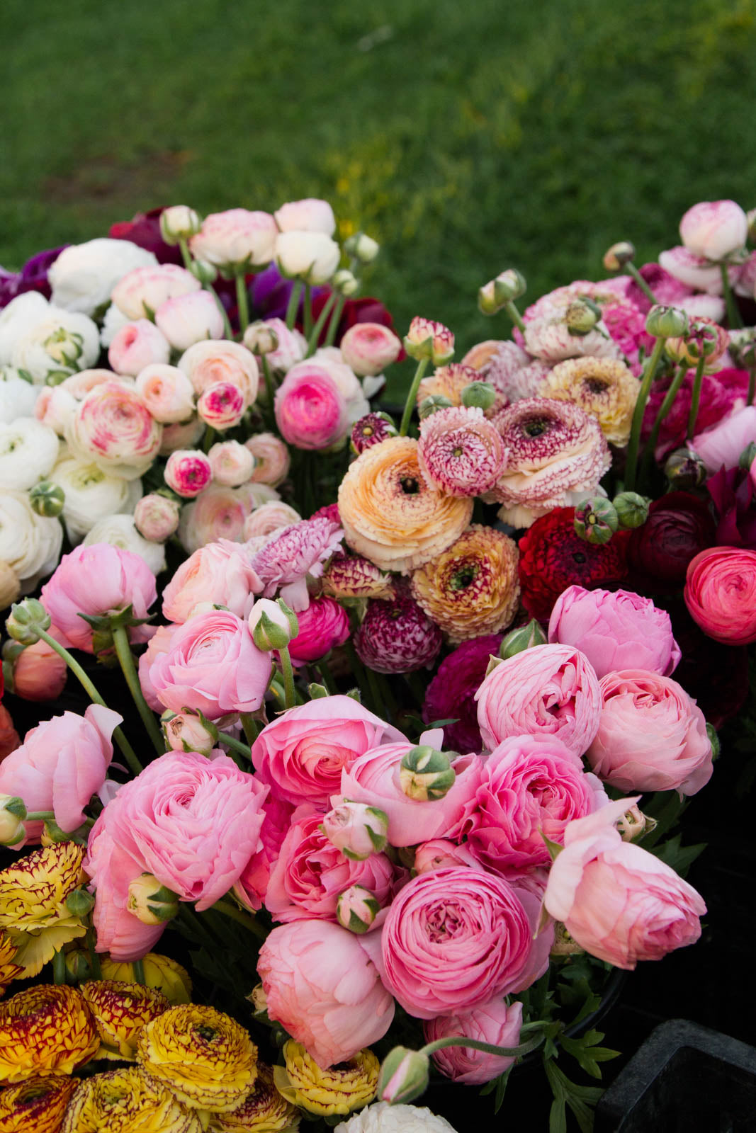 I'd been hooked on ranunculus since the first year I grew flowers (the very first flowers I ever cut to put in a vase were ranunculus). But as amazing as the ones I'd been growing were, I knew there had to be a way to grow some of all the unbelievably beautiful varieties teasing me online! So this season was our first big flower gamble. Ranunculus corms had been effectively banned from importing, so I never had the chance to grow them, but with a little sleuthing discovered some of the most popular ranunculus series were seed propagated series, and seeds were importable in NZ! There was however next to no info around in the world about growing ranunculus from seed, but I forged ahead and very nervously tracked the breeders down, imported seeds, sent them off to become plugs, planted, nursed and anxiously held my breath if they'd even flower in their first year! (learn more about why we have to grow the good ranunc varieties from seed in NZ here).